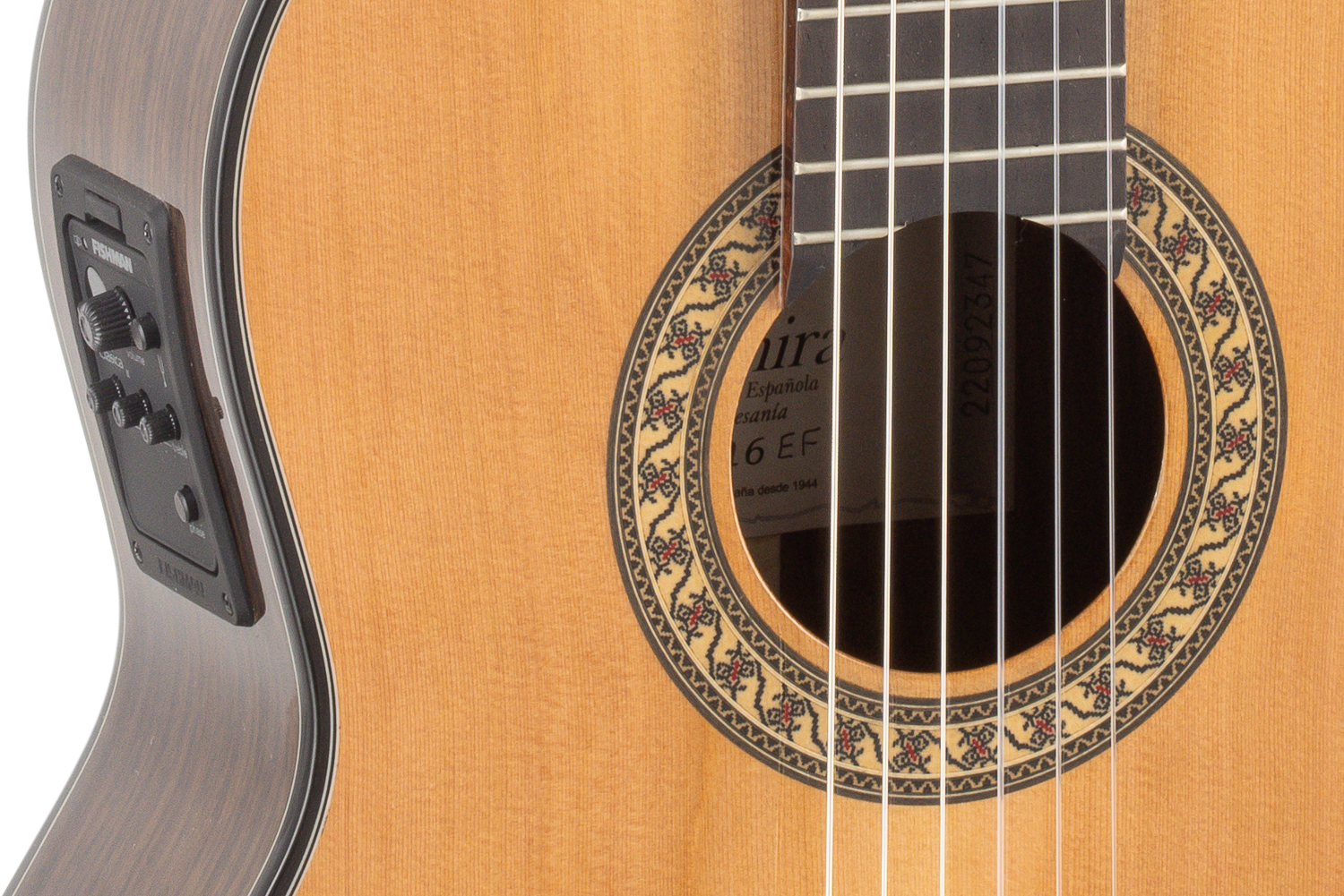 ADM06EF Tapa: Cedro Macizo. Aros y Fondo: Palosanto. Brazo: Caoba con refuerzo de Ébano. Diapasón: Palosanto. Puente: Palosanto. Ribetes y tira de fondo: De abs. Clavijero: Dorado lira. Acabado: Alto brillo. EQ: Fishman Clásica III. Las imágenes publicadas pueden diferir ligeramente del producto final.