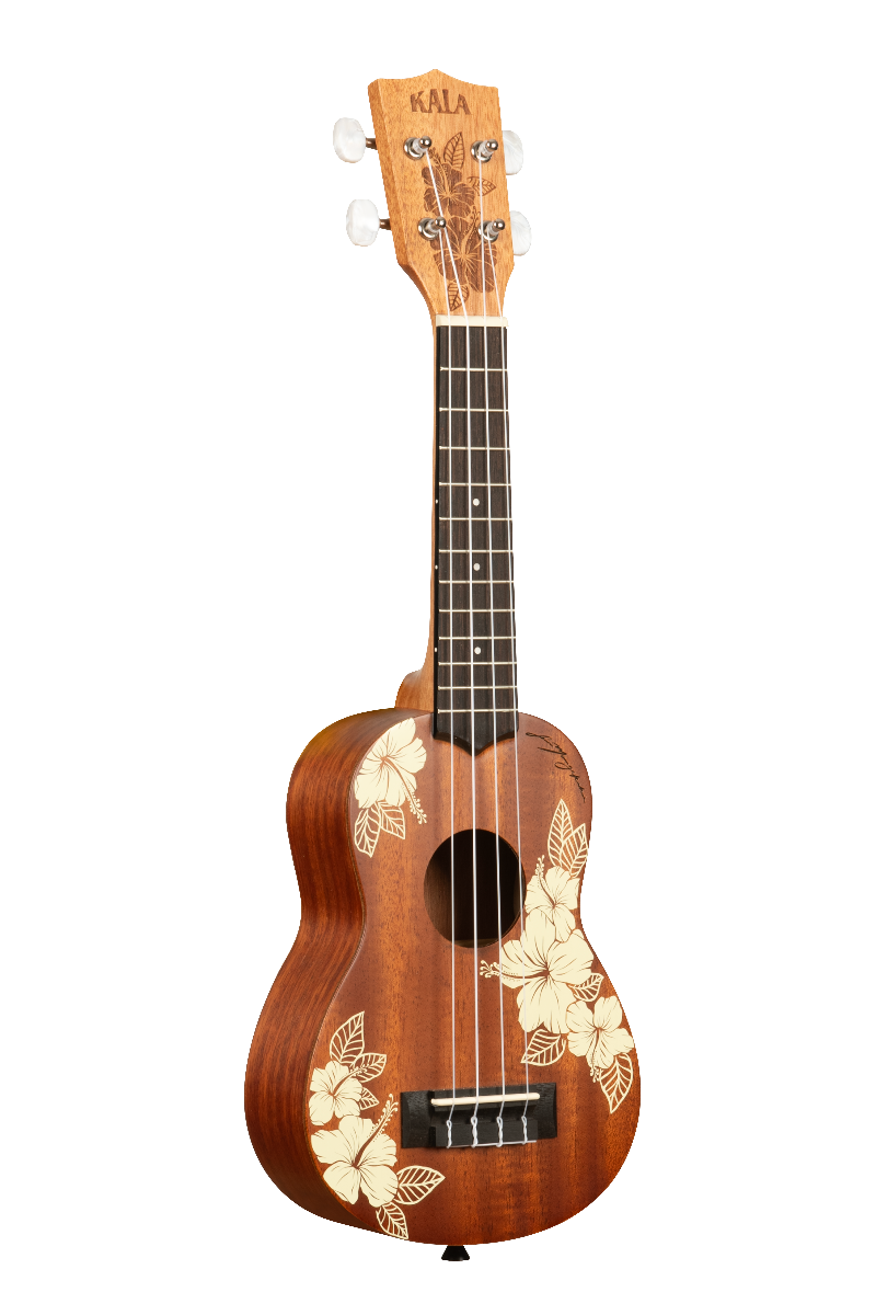 KAHIBISCUS Diseñado por el artista maorí Sam Mangakahia Este diseño floral es la encarnación de la belleza perdurable. Tema “Resourceful” (Ingenioso) Hibisco hawaiano blanco (Esta increíble planta sirve como recordatorio de que debemos ser ingeniosos y utilizar todos nuestros recursos disponibles para animar a quienes nos rodean). Tapa: Caoba. Aros fondo y mástil: Caoba. Diapasón y puente: Palosanto. Número de trastes: 18. Clavijero: De engranajes. Acabado: Satinado. Funda Voyage Collection incluida.