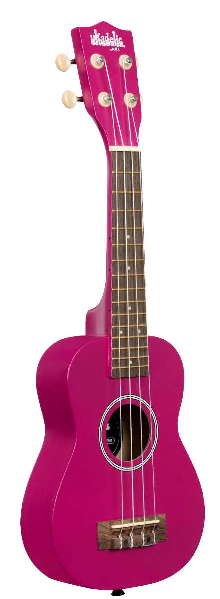 UKADRF Dragonfruit (Morado) UKELELE SOPRANO SERIE UKADELIC Cuerpo: Álamo. Diapasón: Laurel. Mástil: Pino. Clavijero: De engranajes. Funda incluida. Las imágenes publicadas pueden diferir ligeramente del producto final. Caja completa: 12 unidades.