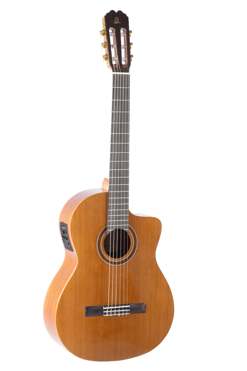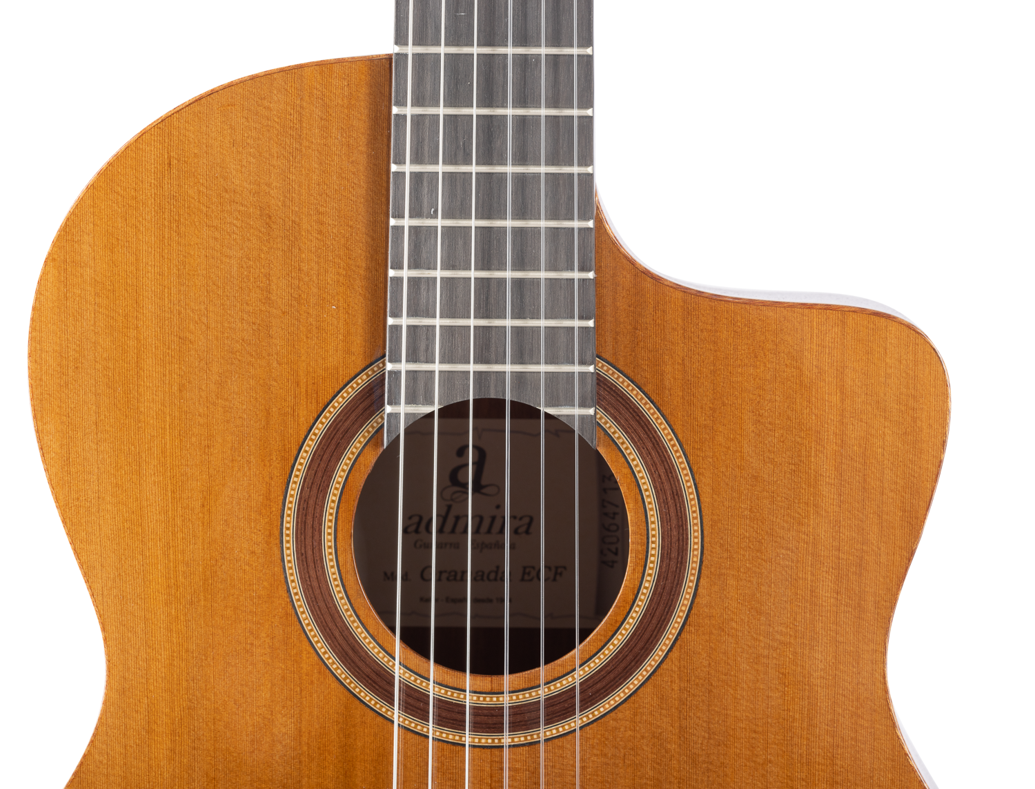 ADM0650ECF Granada Electrificada con Cutaway. Tapa: Cedro Macizo. Aros y fondo: Sapeli seleccionado. Brazo: Caoba. Diapasón: Purple Heart. Puente: Palosanto. Ribetes y tira de fondo: De madera. Clavijero: Dorado lira. Acabado: Alto brillo. Con barra tensora (truss rod). EQ: Fishman Clásica III ecualizador de 3 bandas con afinador. Las imágenes publicadas pueden diferir ligeramente del producto final.