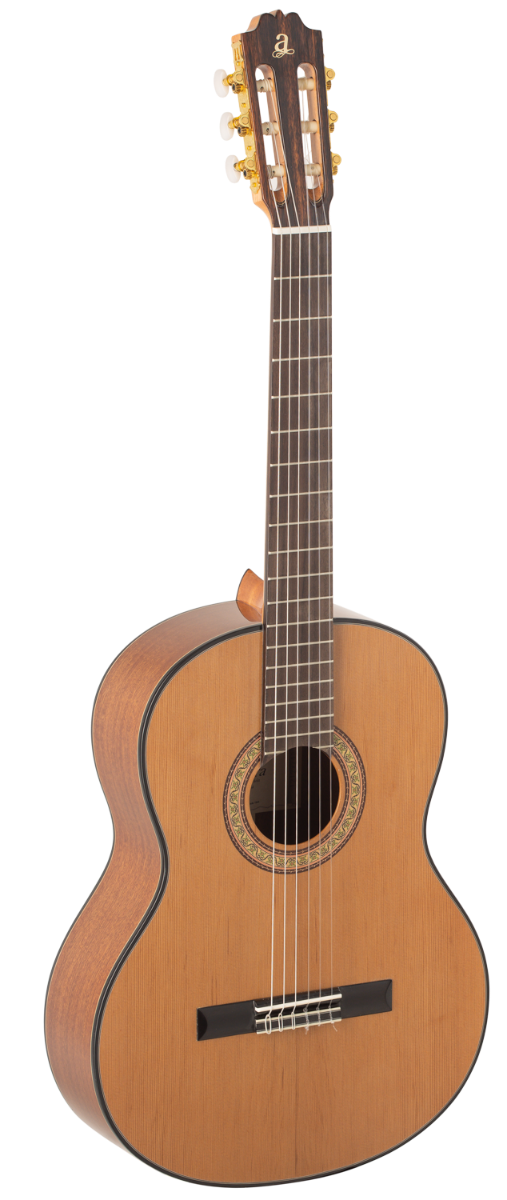 ADM02 Tapa : Cedro Macizo. Aros y Fondo: Sapeli. Brazo: Caoba. Diapasón: Ébano. Varilla interior ajustable. Puente: Ébano. Ribetes y tira de fondo: De madera. Clavijero: Dorado Lira. Acabado: Alto brillo. Las imágenes publicadas pueden diferir ligeramente del producto final.