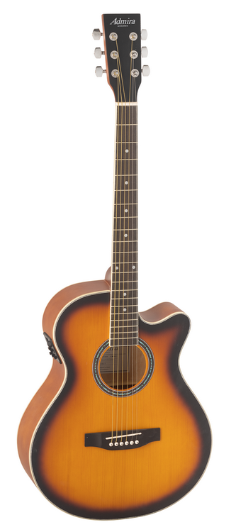 ADMAINDCESBS ADMIRA Indiana Mini Jumbo Tapa: Abeto. Aros y fondo: Linden. Ribete en: Aro tapa y fondo. Clavijeros de calidad. Roseta con nacar. EQ: Activo de 3 bandas con afinador. Electrificada con Cutaway. Acabado: Satinada sombreada. Las imágenes publicadas pueden diferir ligeramente del producto final. Caja completa: 6 unidades.