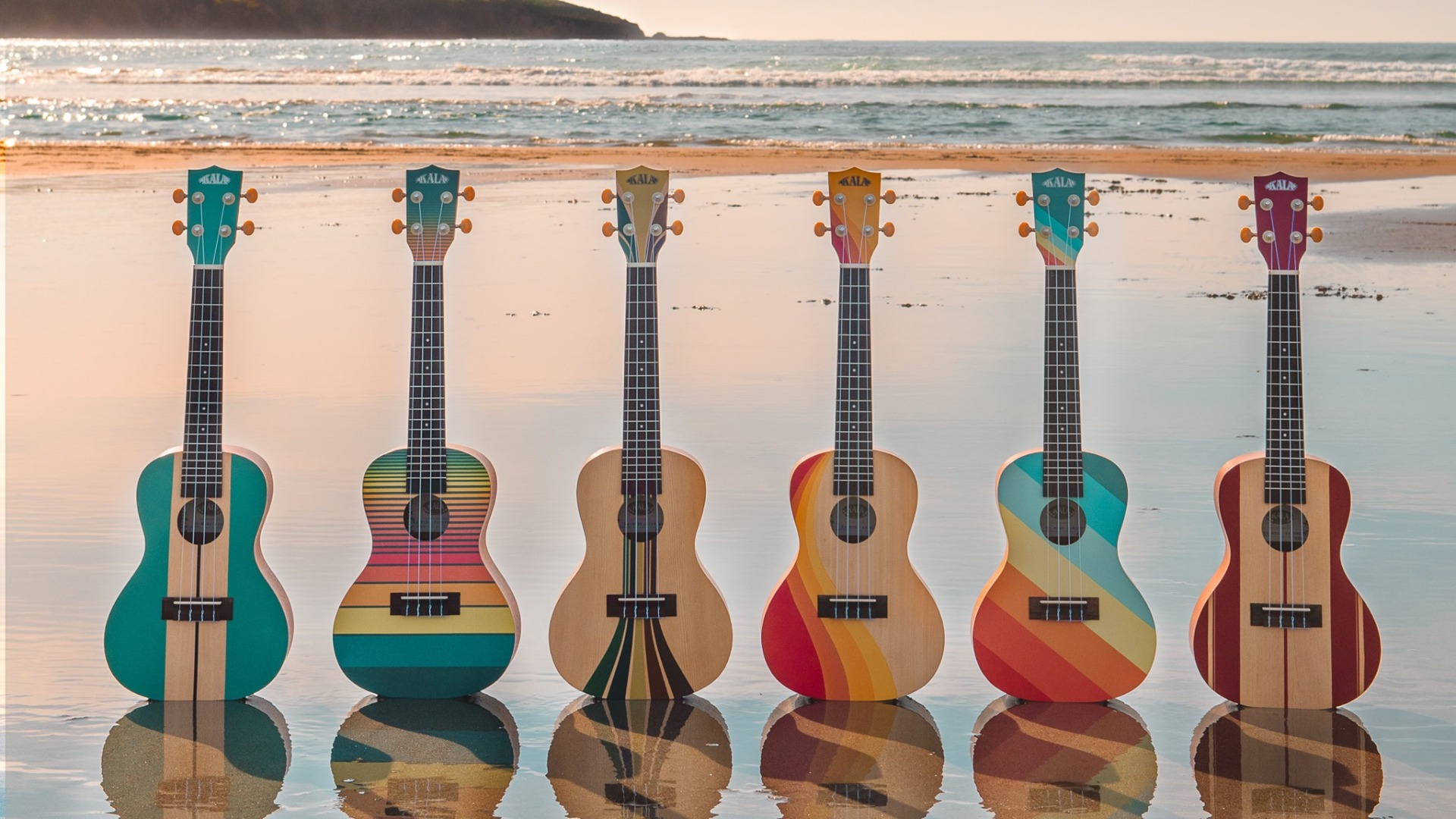 UKCWIPE UKELELE CONCIERTO SERIE SURF Diseños retos inspirados en la cultura surf de California. Tapa: Abeto. Fondo y Aros: Caoba. Diapasón y puente: Palosanto. Número de trastes: 18. Cuerdas: Aquila Súper Nylgut® Acabado: Satinado.