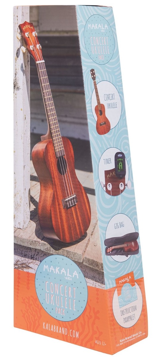 MKCPACK Pack Makala Concierto Tapa: Caoba. Aros fondo y mástil: Caoba. Diapasón: Palosanto. Clavijero: De engranajes. Cuerdas: Aquila Súper Nylgut. Acabado: Satinado. Incluye: Ukelele funda de nailon afinador de pinza KALA y método de aprendizaje. Las imágenes publicadas pueden diferir ligeramente del producto final. Caja completa: 12 unidades.